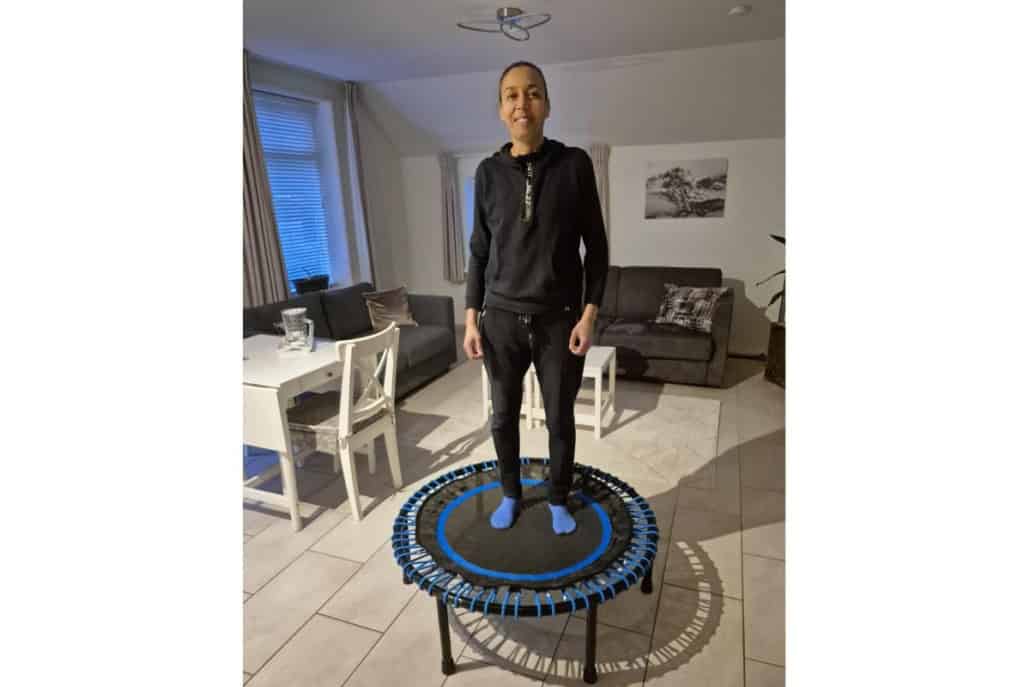 Leefstijlarts Celeste Hoff gebruikt de Flexbounce mini-trampoline precies op die manier. Kort, laagdrempelig en afgestemd op wat haar lichaam nodig heeft.